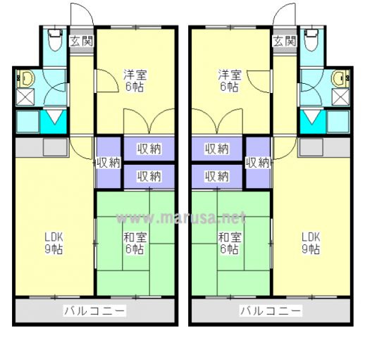 LDK 9.0帖/和室 6.0帖/和室 6.0帖 - 向き
